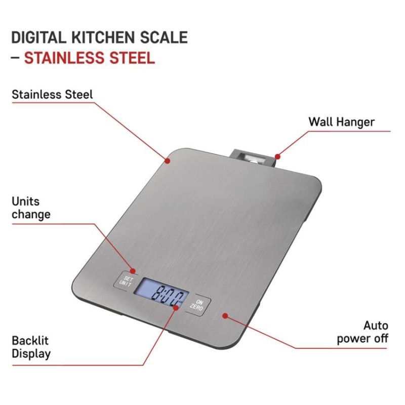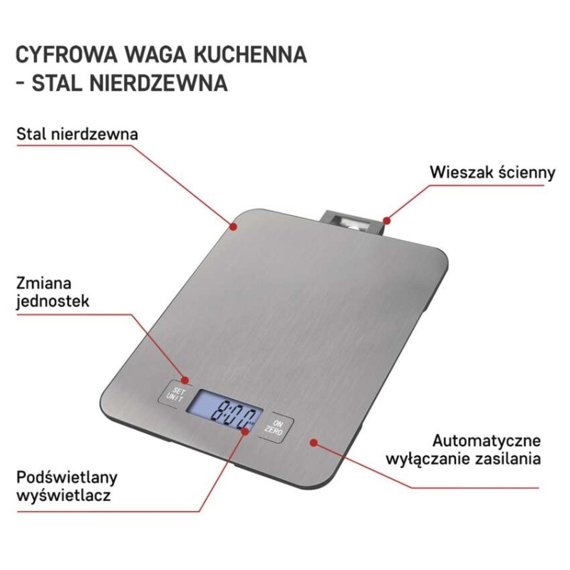 Digitální kuchyňská váha s funkcí TARA. Možnost vážení až do 15 kg. Povrch je z nerezu.