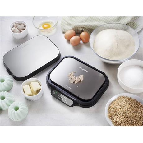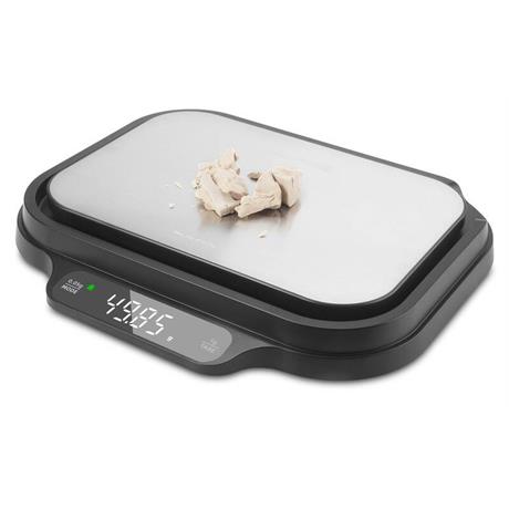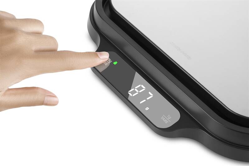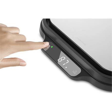 Povrch se zrcadlovou vrstvou a bílý LED displej s vysokým rozlišením 63 × 16 mm, kapacita až 15 kg.