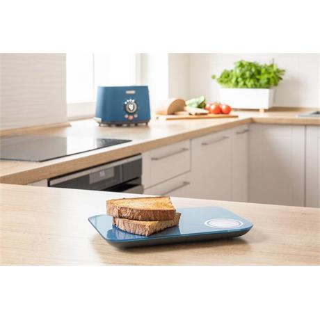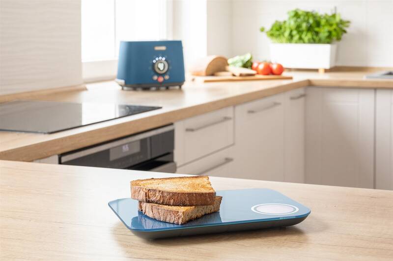 S váhou zvážíte až 5 kg potravin, navíc s přesností na jeden gram. Pro zobrazení hmotnosti vážené potraviny a jejího nutriční složení zvolte režim „Na váze". Všechny hodnoty se vám zobrazí rychle a zřetelně na displeji váhy.