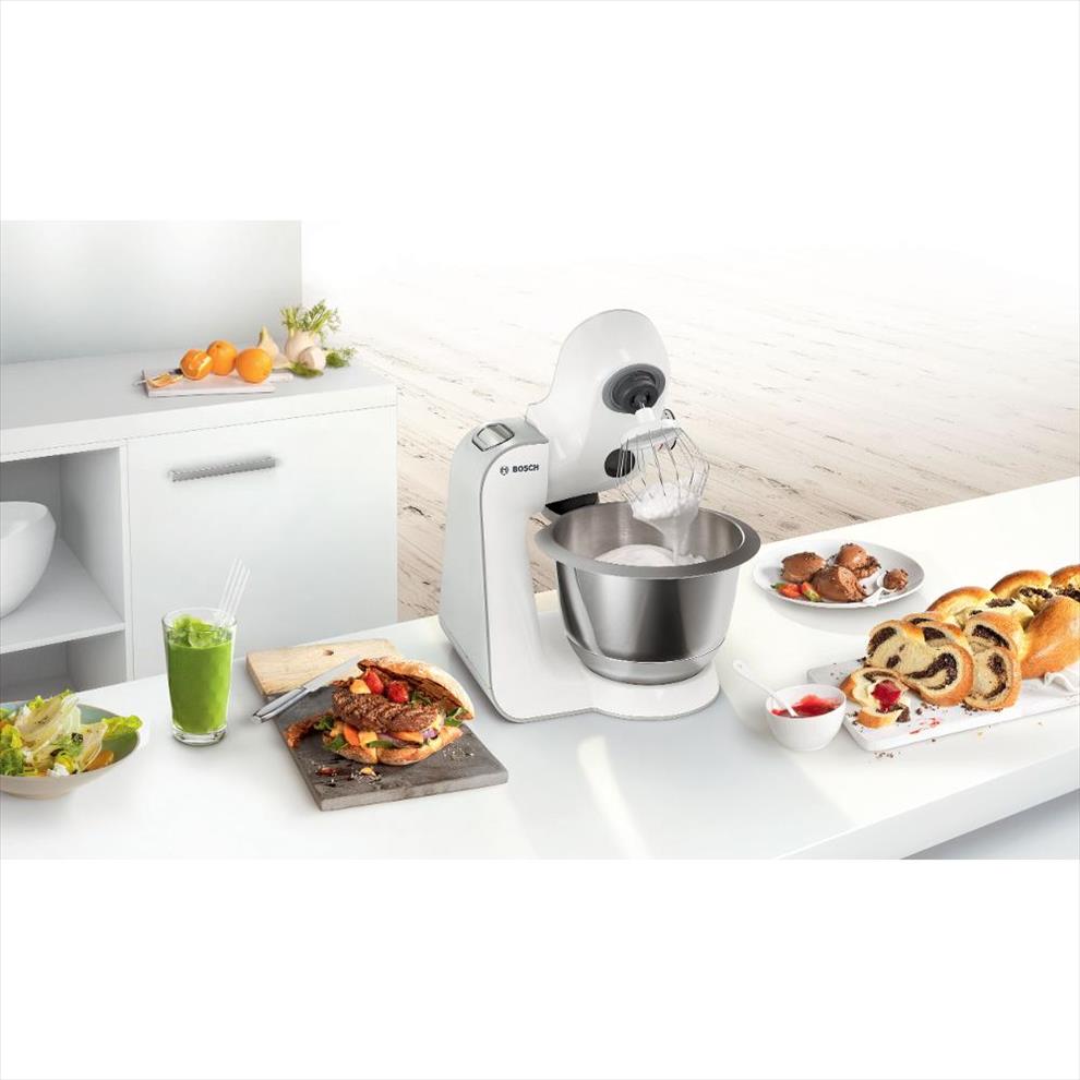 Součástí výbavy kuchyňského robotu Bosch MUM58231 je velká nerezová mísa o objemu 3,9 l, do níž se vám pohodlně vejde až 1,9 kg kynutého těsta nebo 2,7 kg piškotového těsta. Mísa je speciálně tvarovaná tak, aby co nejlépe vyhovovala pohybu nástavců. To nejlepší těsto vám zajistí 3D planetární systém pohybu, který nechává nástavce otáčet po vlastní ose a zároveň i po ose převodovky. Veškerý obsah mísy bude tedy vždy kvalitně a rovnoměrně promíchán.