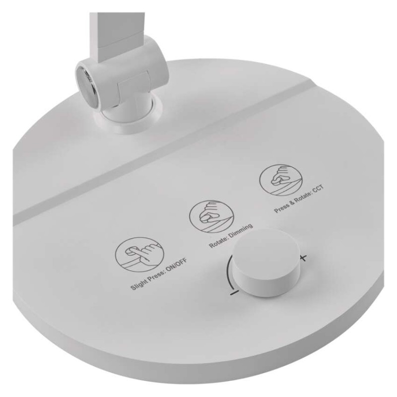 Přidržením a otočením ovládacího tlačítka nastavíte barvu světla od teplé bílé (3 000 K) až po studenou bílou (6 500 K). Studenější barva světla pomáhá koncentraci a je vhodná zejména při práci. Teplá barva světla v kombinaci s nižší intenzitou osvětlení je pak optimální pro relaxaci nebo před spaním.