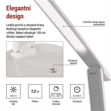 barva: bílá|barva světla: teplá/neutrální/studená bílá|činitel stárnutí: neuvádí se|čip LED: SMD|délka přívodního kabelu: 1,5 m|energetická třída: neuvádí se|energetická třída (od 1.9.2021): neuvádí se|index podání barev (CRI): Ra >80|integrovaná nabíjecí baterie: ne|krytí: IP20|materiál: plast|max. výkon: neuvádí se|napájecí zdroj: 12 V/500 mA|napájecí zdroj součástí balení: ano|napětí: 220–240 V|obsah rtuti: <0 mg|patice (uchycení žárovky): neuvádí se|počet LED: neuvádí se|počet spínacích cyklů: neuvádí se|příkon: 7,2 W|prodejní obal: 1 ks, krabice|rozměr: 370 × 340 mm|rychlost náběhu na 100 %: neuvádí se|stmívání: ano|světelný tok: 450 lm|teplota chromatičnosti: 2 700/4 000/6 500 K|typ napájení: síť|účiník: neuvádí se|USB port: ne|životnost: 30 000 hodin