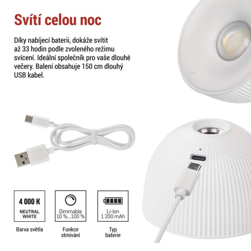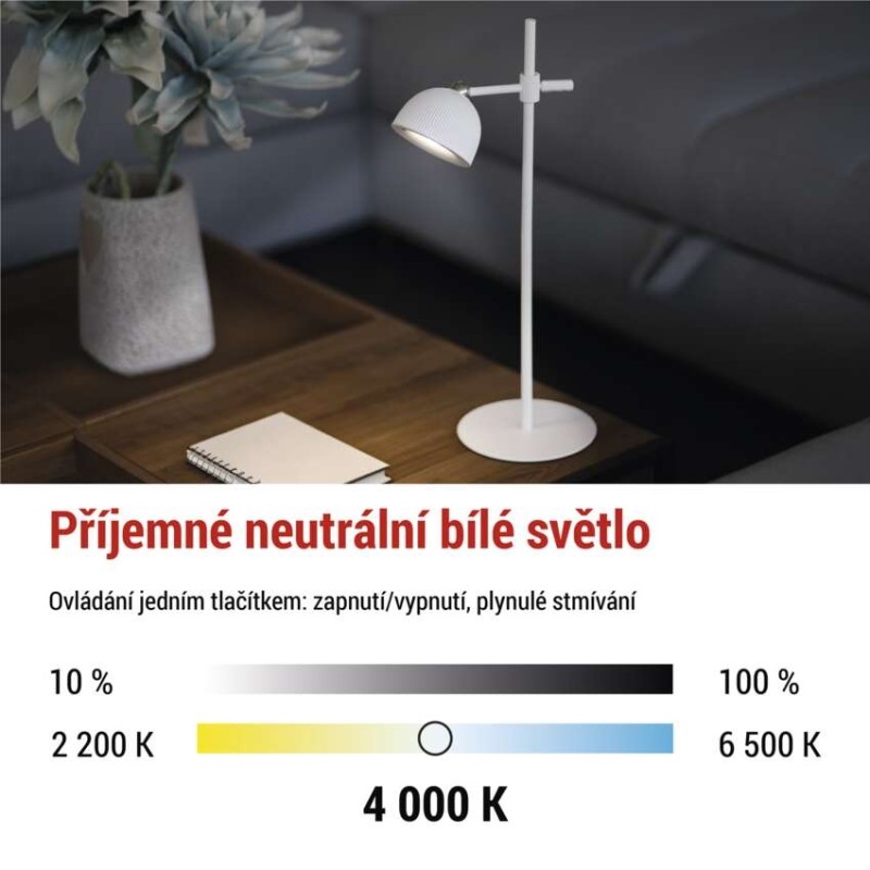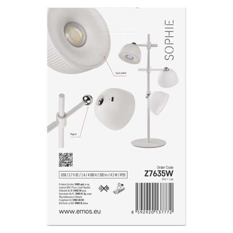 EMOS LED stolní lampa SOPHIE, nabíjecí, bílá
