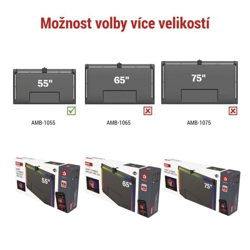 GoSmart Ambientní LED TV osvětlení posouvá zážitek ze sledování televize na zcela novou úroveň. Díky HD synchronizační kameře se podsvícení automaticky přizpůsobuje barvám na obrazovce, čímž vytváří dokonalý vizuální efekt. Veškeré ovládání a nastavení se provádí přes mobilní aplikaci EMOS GoSmart, která je dostupná pro OS Android i iOS.