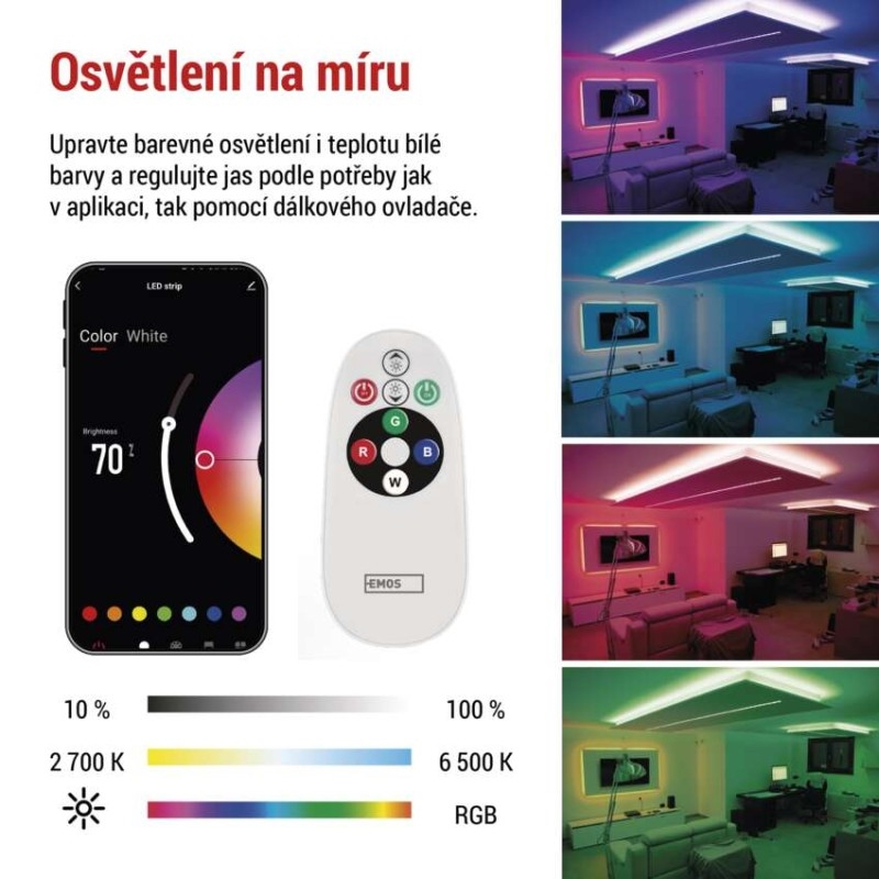 Připojte LED pásek k vaší Wi-Fi síti a spárujte ho s mobilní aplikací EMOS GoSmart, dostupnou pro Android i iOS. V aplikaci můžete snadno nastavovat světelné scény, časové rozvrhy pro zapnutí a vypnutí osvětlení, nebo párovat s dalšími chytrými zařízeními ve vaší domácnosti.