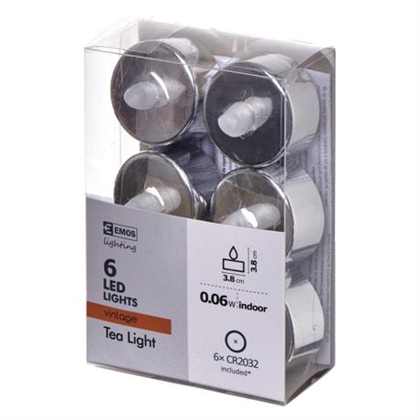 LED dekorace EMOS ZY2150 6x čajová svíčka stříbrná 6xCR2032