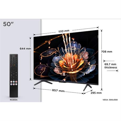 Seznamte se s budoucností velkoformátových displejů u smart televize TCL 50C69KS. TCL QD-Mini LED spojuje přednosti technologií QLED a OLED, takže se můžete těšit na osvětlení s přesností téměř na úroveň jednotlivých pixelů. Přitom využívá mimořádnou QLED technologii nabízející kontrast a barevný rozsah, jenž lze porovnat s OLED. Poskytuje ale ještě vyšší špičkový jas a delší životnost. TCL QD-Mini LED C6K poskytuje opravdu mistrovský vizuální zážitek. Jejích 180 stmívacích zón zajistí nádherně živé barvy a mimořádně vysoký kontrast. Jde o tu nejvyspělejší zobrazovací technologii, která dále nabízí širší barevný gamut, delší životnost i větší velikosti obrazovky.