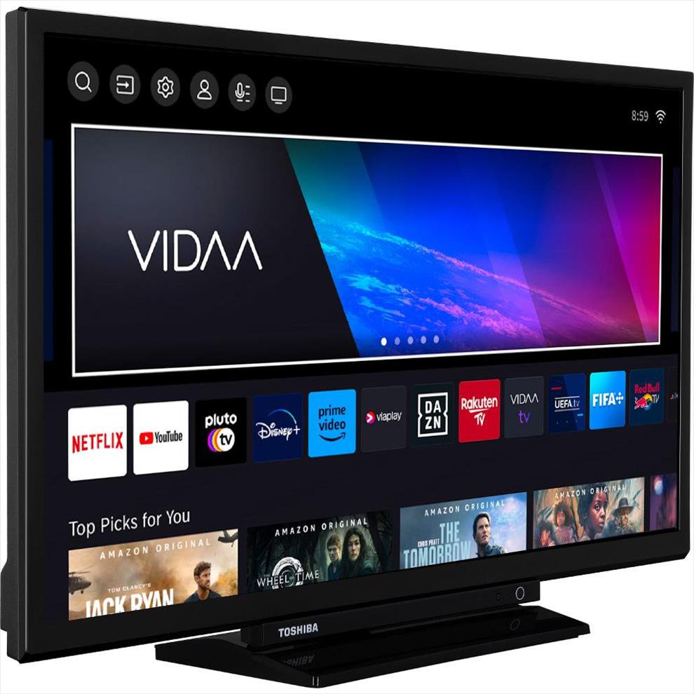 LED SMART televize, úhlopříčka 60 cm /24", Operační systém VIDAA, rozlišení HD Ready (1366x768), výstupní výkon 2 x 2,5 W, HDR10, 2x HDMI, 1x USB, CI+ slot, Netflix, YouTube, Disney+, VESA 75 x 75mm