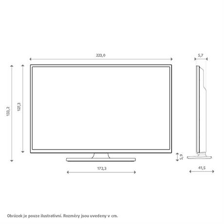 32" (80 cm) úhlopříčka • HD Ready televize • HD (1366 × 768 px) rozlišení • DVB-T2/C/S2 (HEVC/H.265) • LED displej • Direct LED podsvícení • Smart TV • HDR • Bluetooth • Wi-Fi • LAN • Netflix • YouTube • Dolby Audio, stereo • chytrý ovladač • ovládání hlasem • operační systém Google TV • 2× HDMI • 1× USB 2.0 • VESA??????? 200 × 200 mm • středový statický stojan??????????????