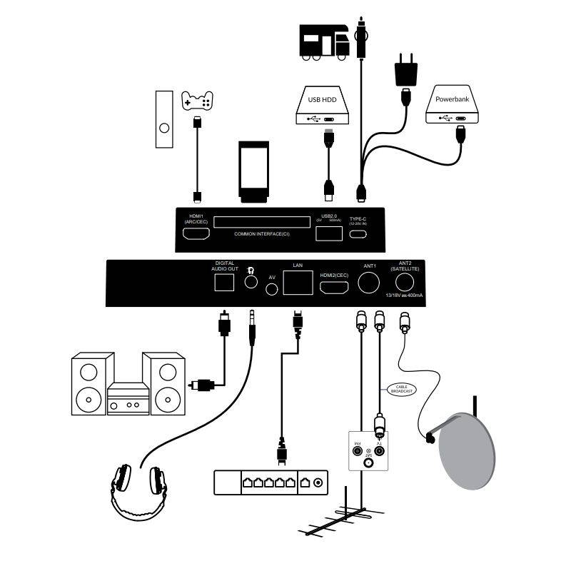Univerzální televize se perfektně hodí pro zábavu na každém kroku. Můžete ji používat nejen ve své domácnosti, ale také na cestách. Na jejím těle se nachází konektor pro připojení 12V napájecího adaptéru, který lze zapojit do zásuvky v automobilech, karavanech, nebo třeba na lodích. Televizi tak můžete instalovat i do obytných vozů, abyste se nikdy nenudili a mohli si zpříjemnit večer po celodenní jízdě sledováním oblíbeného filmu.