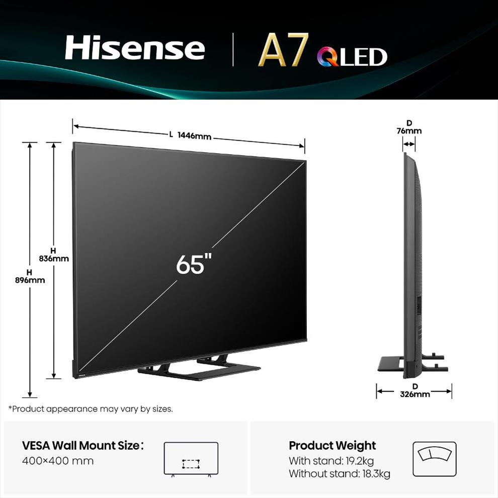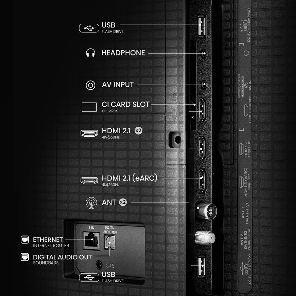 QLED SMART televize, úhlopříčka 65"/164 cm, OS VIDAA U9, rozlišení 4K - UHD 3840 × 2160, HDR10+, výkon reproduktorů 20W(2.1CH) + subwoofer 20W, Game Mode Plus, HSR (120Hz), Dolby Vision/Atmos, Falmmaker mód,