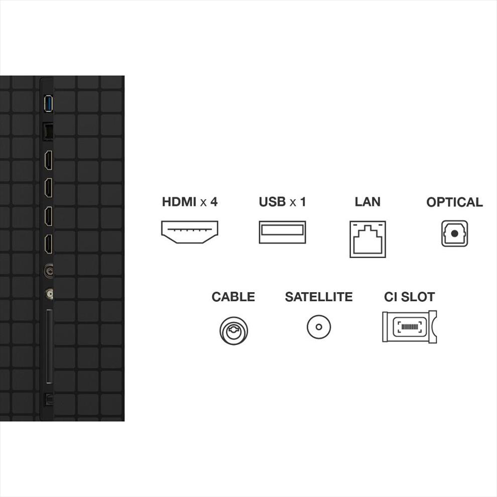 Uživatelům je k dispozici řada komfortních funkcí, jako je EKO senzor pro automatickou úpravu jasu podle okolního světla, časovač vypnutí a podpora HbbTV. Pro ochranu zraku televizor využívá technologie snižující modré světlo, potlačující blikání a stabilizaci pohybu MEMC. Design televize s titanovou barvou a bočními nohami se stylově hodí do moderních interiérů, a díky tenkému profilu s Micro-OD se hodí i pro montáž na stěnu s VESA roztečí 400 × 400. S úložištěm o kapacitě 64 GB je dostatek prostoru pro aplikace a systémová data.