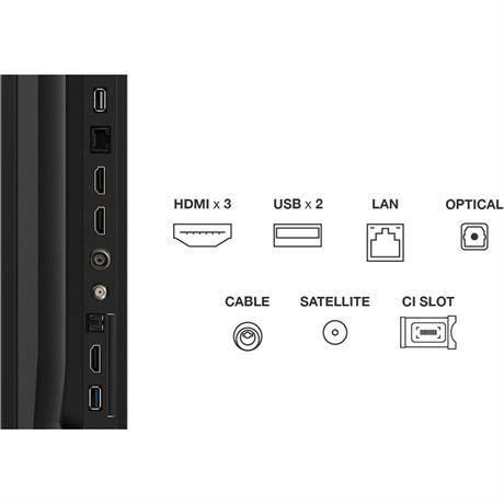 LED televize, úhlopříčka 75"/189 cm, OS Google TV, 4K - UHD 3840 × 2160, obnovovací frekvence 60 Hz, UHD UPSCALER, výkon reproduktorů 30 W, 2x USB, 3x HDMI, LAN, Wi-Fi, BT, Apple TV, Netflix, Disney+