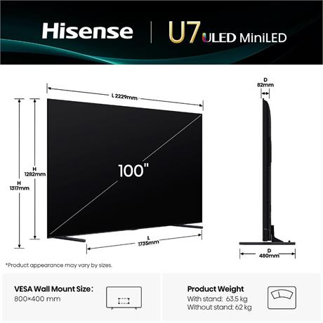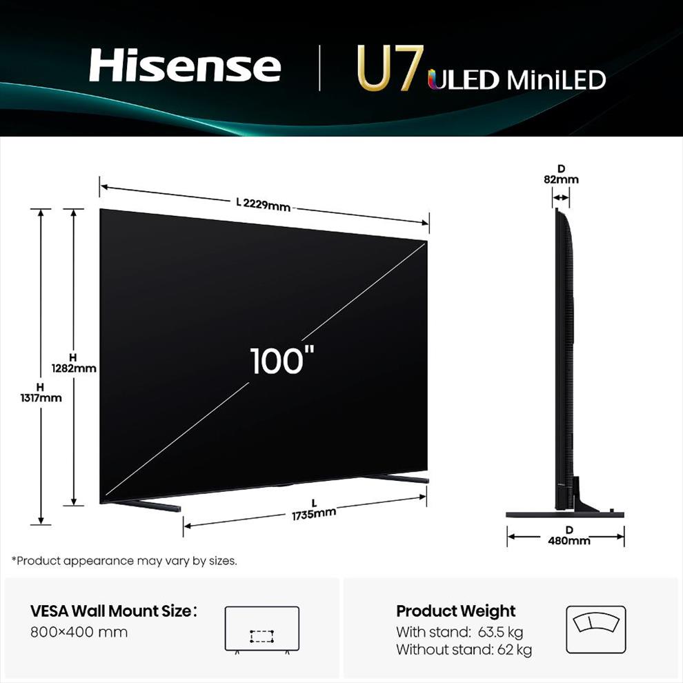 Mini LED SMART televize, úhlopříčka 100"/253 cm, OS VIDAA U9, rozlišení 4K - UHD 3840 × 2160 (165Hz), HDR10+, Local Dimming 608 zón, výkon reproduktorů 30W (2.1CH) + subwoofer 20W, 165Hz Game Mode Ultra,
