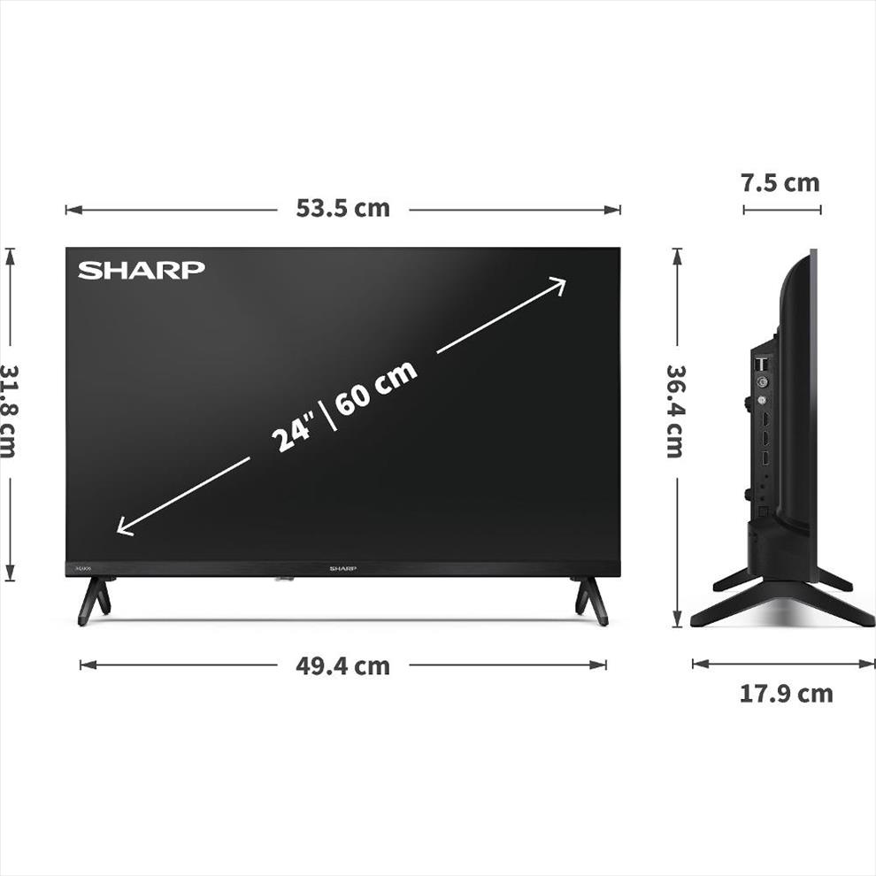 LED televize, úhlopříčkou 24" (60 cm), operační systém Google TV, energetická třída E, kvalita obrazu HD, rozlišení 1366 x 768, bezrámečkový design, výkon 2 x 3W, 3x HDMI, 2x USB, VESA 100 x 100