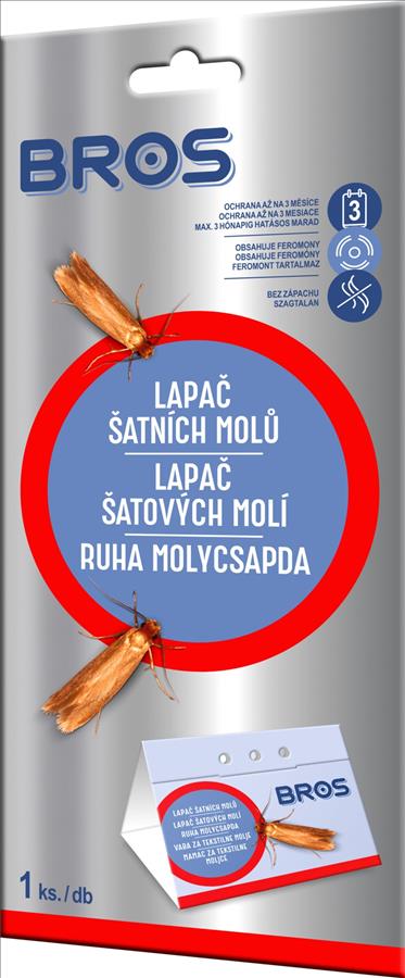 Past bez zápachu pro sledování přítomnosti molů šatních ve skříních a zásuvkách. Lepidlo s feromonem přirozeně láká a účinně chytá dospělé samce mola šatního, a to po dobu až 3 měsíců. Neobsahuje chemické insekticidy.
