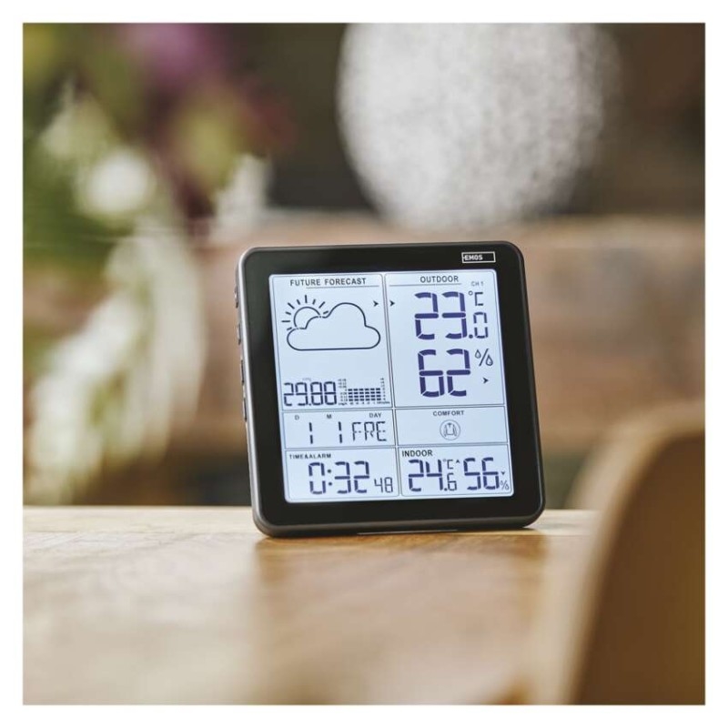 Kde se bude bezdrátová meteostanice nejlépe vyjímat? Nejvhodnější je samozřejmě meteostanici umístit tam, kde bude dostatečně na očích, zejména tedy před odchodem z domu. Praktická je proto možnost pověšení na zeď, například vedle vstupních dveří. Stejně tak lze meteostanici postavit na stůl, například vedle televize či na polici v kuchyni. Meteostanici lze také příznačně umístit na noční stolek, kde využijete i její další funkce, jako je budík, kalendář atd.