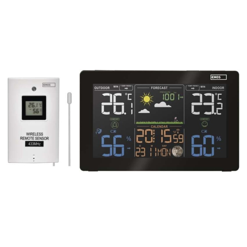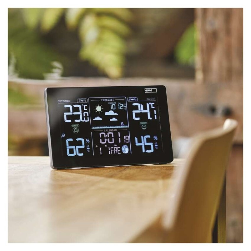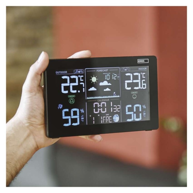 Potřebné hodnoty zajišťuje čidlo, které má dosah až 50 metrů. Celkem je možné použít až 3 čidla. Budete tak mít přehled o teplotě na různých místech, například ve sklepě, v zimní zahradě, na půdě apod. Nechybí ani barometr, který zprostředkovává údaje o atmosférickém tlaku.