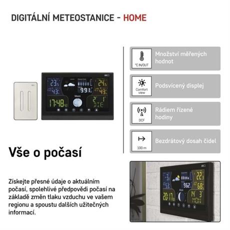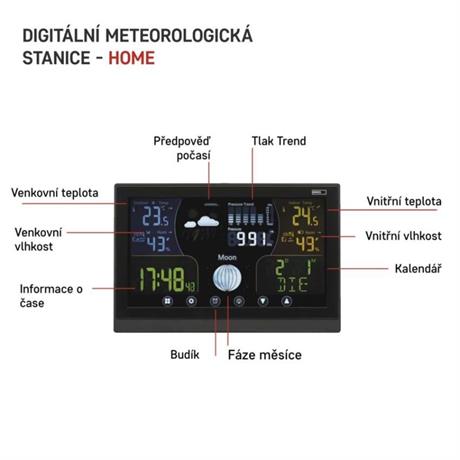Bezdrátová meteostanice značky EMOS pro domácí použití má LED podsvícený displej, dá se pověsit na zeď a dosah jejího čidla je až 100 metrů. Stanice měří vnitřní i venkovní teplotu, vnitřní i venkovní vlhkost, její součástí je i barometr, ukáže vám také fáze měsíce nebo korekci nadmořské výšky. Díky této moderní meteostanici budete mít dokonalý přehled o počasí.