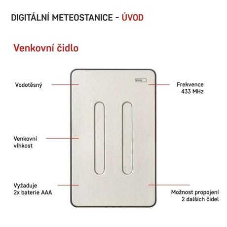 • Napájení stanice: 3× 1,5 V AAA (nejsou součástí balení)