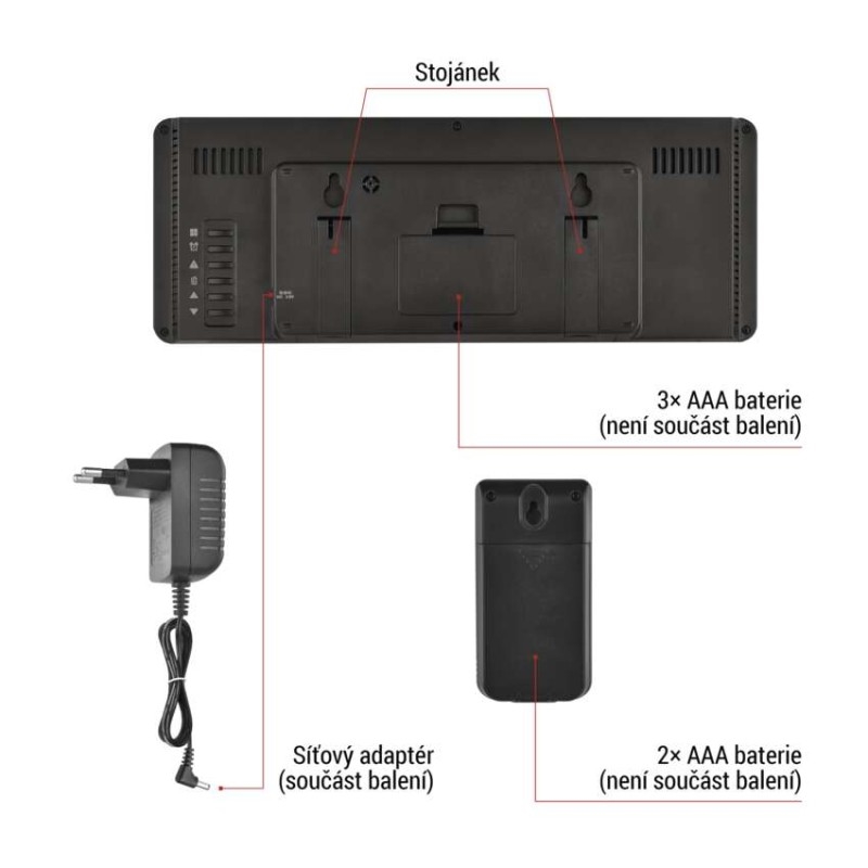 napájení stanice3× 1,5 V AAA (nejsou součástí balení)