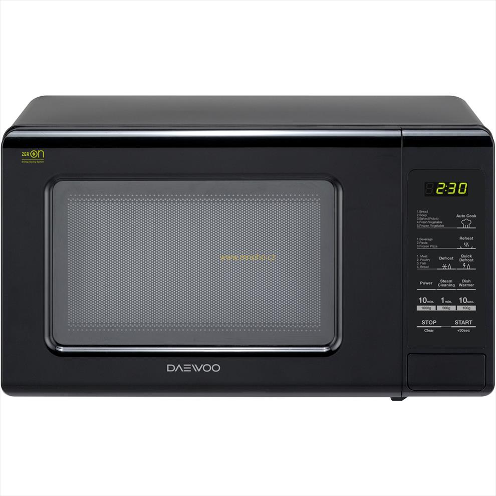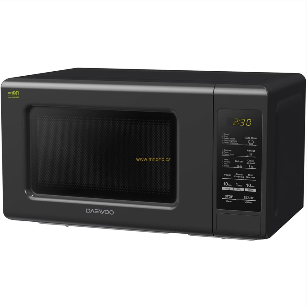 Mikrovlnná trouba Daewoo KOR 6S2AK v designovém černém provedení s elektronickým ovládáním a funkcí rozmrazování, 11 úrovní výkonu a maximální výkon ohřevu – 800W.