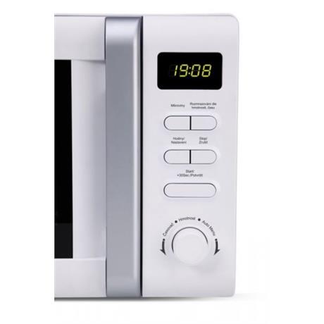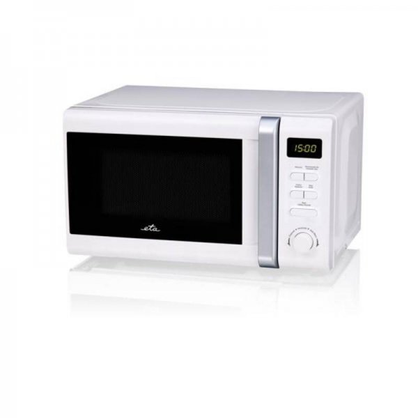 Volně stojící mikrovlnná trouba ETA 1208 90000 s mikrovlnným výkonem 700W a tálířem o průměru 24,5 cm se jistě stane skvělým pomocníkem do každé kuchyně. Jednoduchou obsluhu a skvělý komfort uživateli poskytne mechanické ovládání s přehledným digitálním displejem a hodinami. Trouba v bílem designu s celkovým objemem 20 litrů je vybavena 8 automatickými programi, 3 funkcemi s časovačem s možností nastavení až na 95 minut.