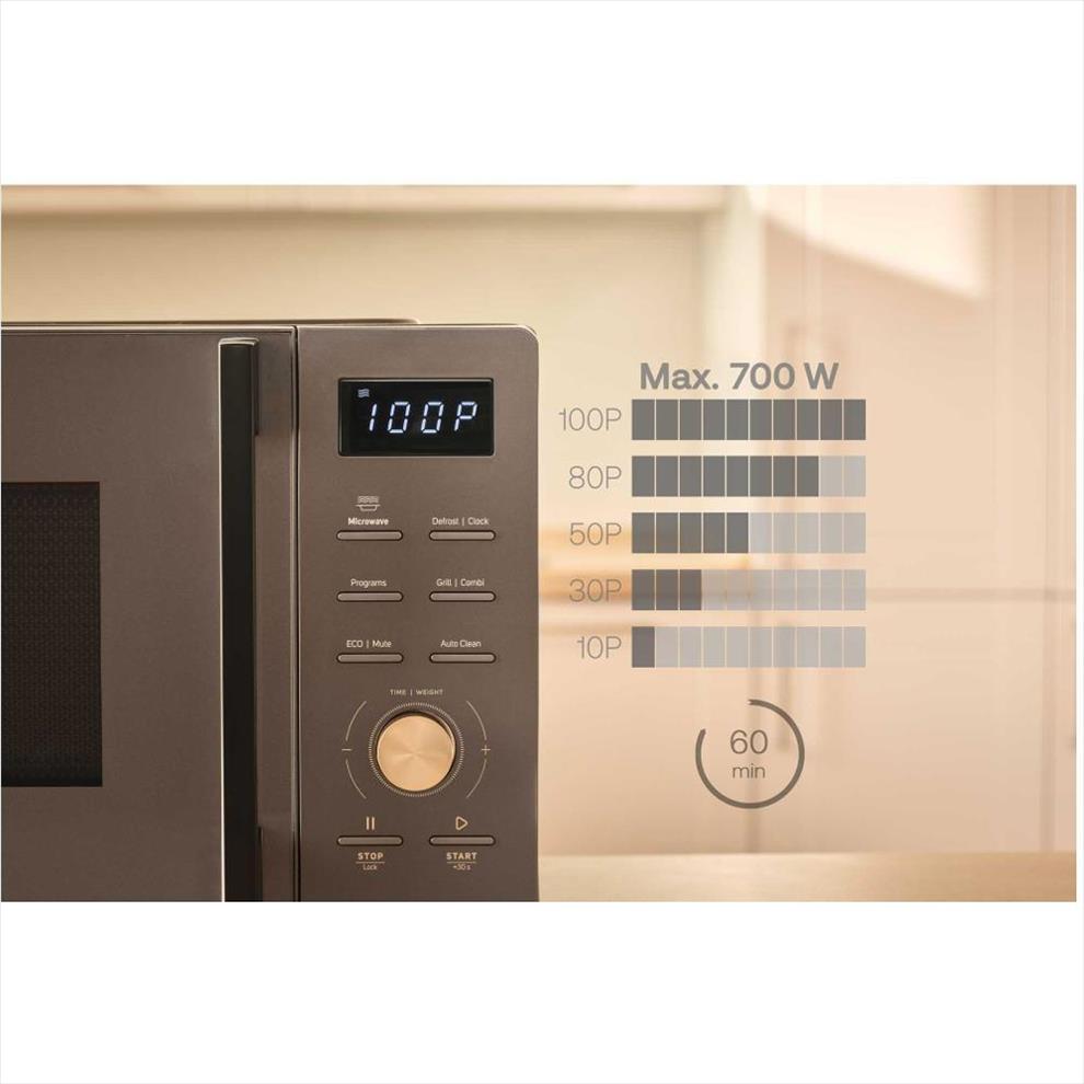Díky mikrovlnnému výkonu 700 W si bez problému ohřejete každé vaše jídlo. 800W gril snadno opeče slaninu nebo rozpeče toast se sýrem. Kombinovaný režim mikrovln a grilu perfektně propeče například zmrazené předsmažené kuřecí stripsy.