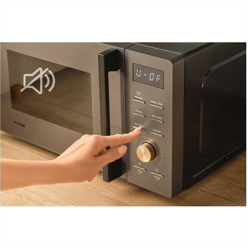 Mikrovlnná trouba s grilem Sencor SMW 5520BK vám rychle a jednoduše ohřeje i opeče pokrmy zásluhou mikrovlnného výkonu 700 W a grilu 800 W. Úsporné funkce ECO a MUTE se postarají o váš maximální komfort. Snadnou obsluhu zajistí LED displej a odolný povrch s vlastnostmi keramického materiálu