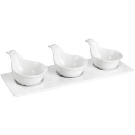 Sada misek 3 ks. LAMART Dine LT9218. . Porcelánový podnos. Vhodné pro každodenní použití. Snadno se udržují a čistí. Ideální pro servírování různých pokrmů nebo občerstvení. . Objem 3 x 75 ml. Barva bílá