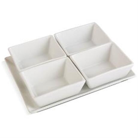 Sada misek 4 ks. LAMART Dine LT9220. . Dřevěný podnos. Vhodné pro každodenní použití. Snadno se udržují a čistí. Ideální pro servírování různých pokrmů nebo občerstvení. . Rozměry 20 x 15 cm. Objem 4x75 ml. . Barva bílá