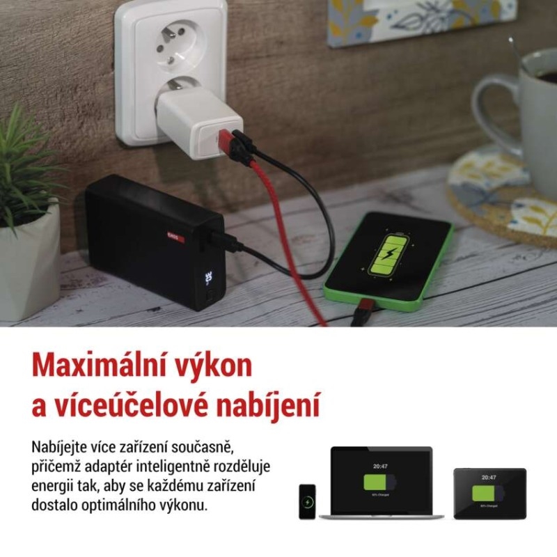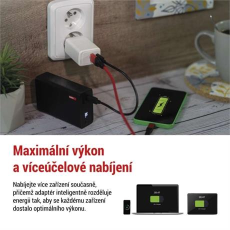 Díky pokročilé Power Delivery (PD) technologii můžete nabíjet kompatibilní zařízení několikanásobně rychleji než s běžnými adaptéry. Tento adaptér podporuje rychlé nabíjení nejen pro smartphony a tablety, ale i pro výkonné notebooky. S vysokým výstupním výkonem zajišťuje stabilní a efektivní přísun energie i pro nejnáročnější zařízení.