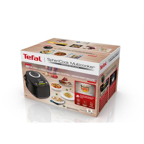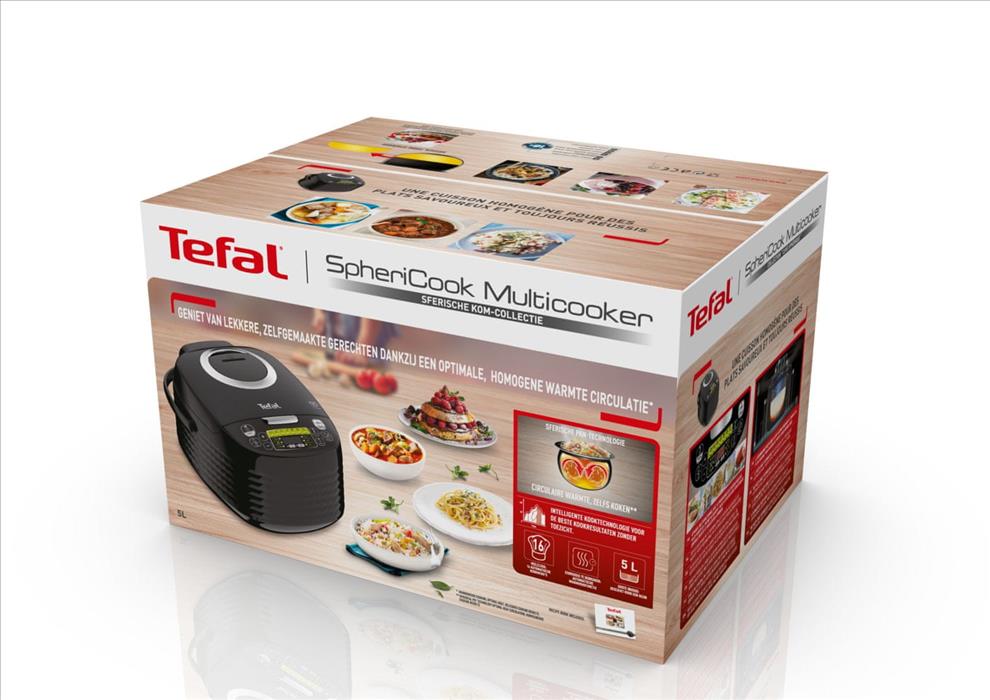 Multifunkční elektrický hrnec s příkonem 820 W a s kulatou nádobou o objemu 5 litrů. Tefal Sphericook 16v1 RK745800 nabízí 16 režimů vaření, automatické udržování teploty po 24 hodin a funkci zpožděného startu pro naplánování vaření. Odnímatelné části jsou vhodné do myčky nádobí.