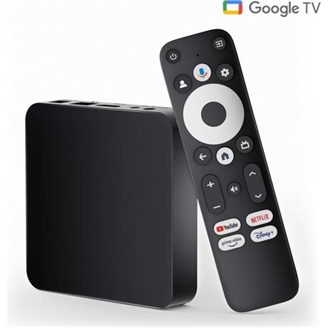 Google TV box; podpora 4K Ultra HD; úložiště 32 GB RAM; paměť 2 GB; operační systém Android 12; podpora aplikací Netflix, Disney+, Prime video, Oneplay, HBO Max, Apple TV, Skylink Live TV, YouTube, Spotify