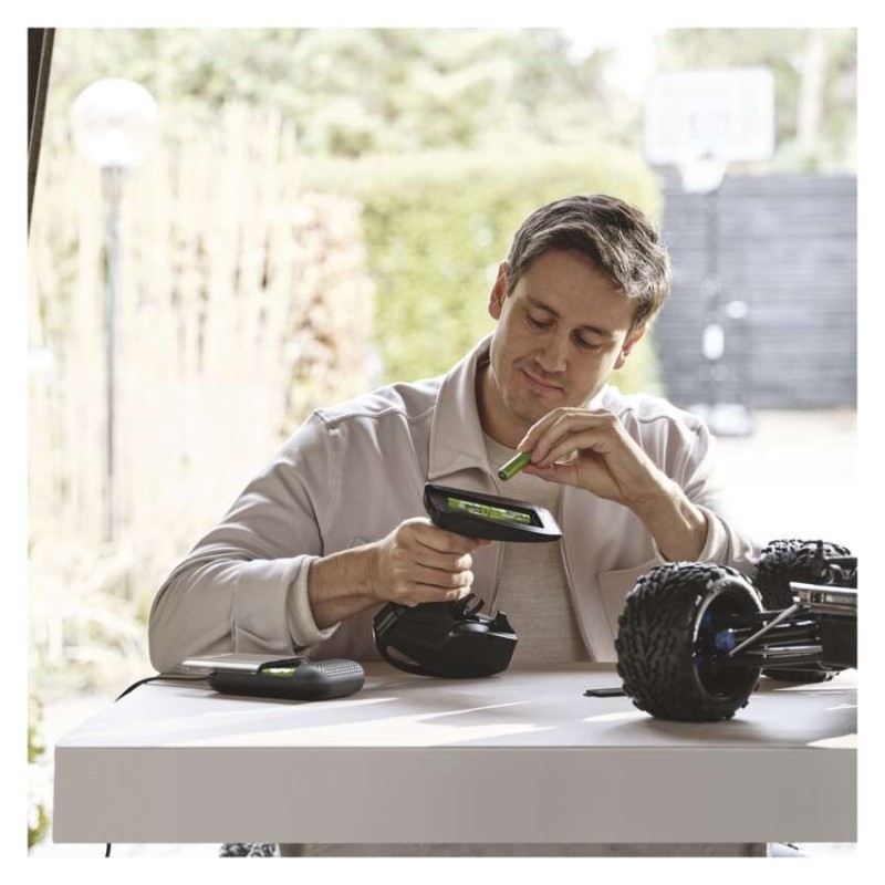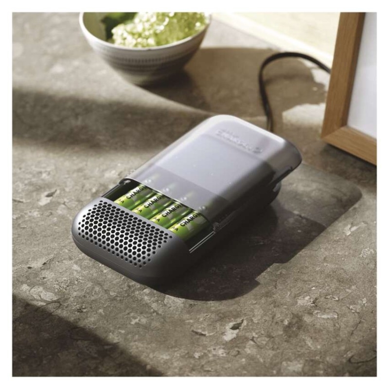 Nechcete zatěžovat životní prostředí opakovaným nákupem jednorázových baterií, ale zdlouhavé nabíjení vás obtěžuje? S GP Recyko Charge 10, nejrychlejší nabíječkou na světě, budou vaše baterie spolehlivě nabité během 10 minut. Nabíječka vás navíc potěší ochranou proti přehřátí, ECO módem pro šetrné nabíjení NiMH baterií, plně automatickým inteligentním nabíjením a maximálně tichým provozem. Součástí nabíječky, která si hravě poradí se všemi druhy AA i AAA baterií, jsou navíc 4 ekologicky vyráběné AA baterie s kapacitou 1 700 mAh pro rychlé nabíjení, jež vydrží více než 700 nabíjecích cyklů.