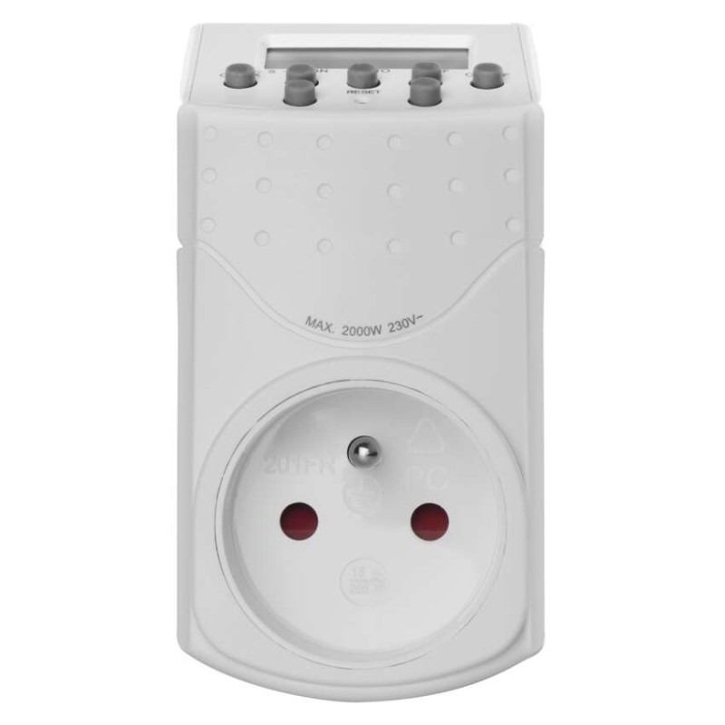Tato digitální spínací zásuvka, nebo-li časovač, je ideální pro nastavení zapnutí a vypnutí jakýchkoliv elektrických spotřebičů. Je spolehlivý i ve Vaší nepřítomnosti.