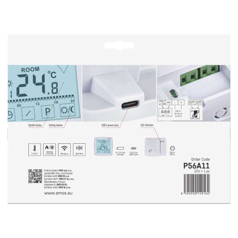 EMOS Pokojový programovatelný bezdrátový OpenTherm termostat P56A11
