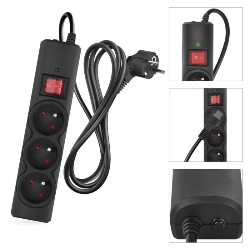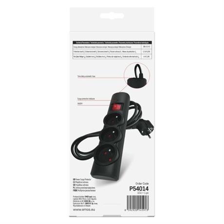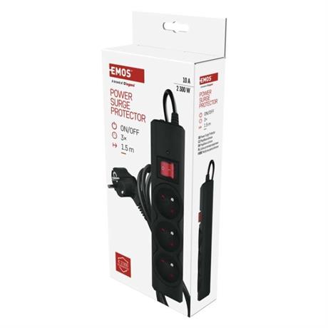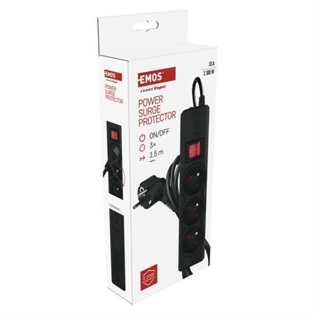 EMOS Přepěťová ochrana – 3 zásuvky, 1,5 m, černá