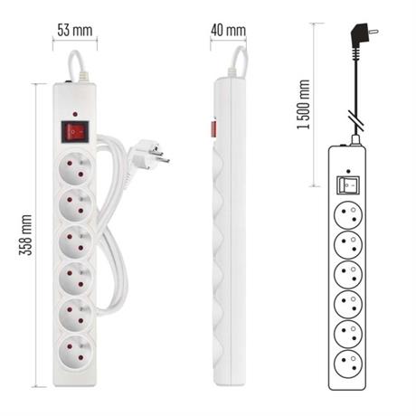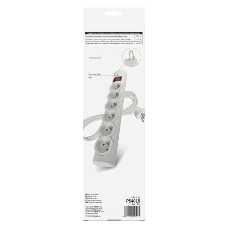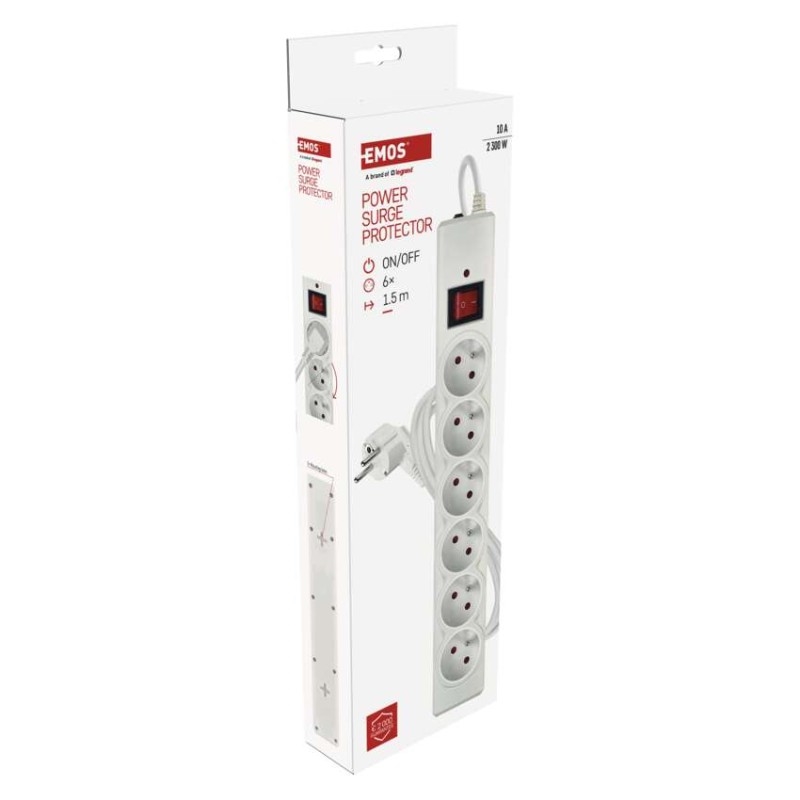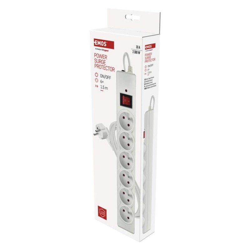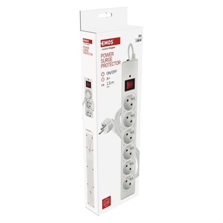 EMOS Přepěťová ochrana – 6 zásuvek, 1,5 m, bílá