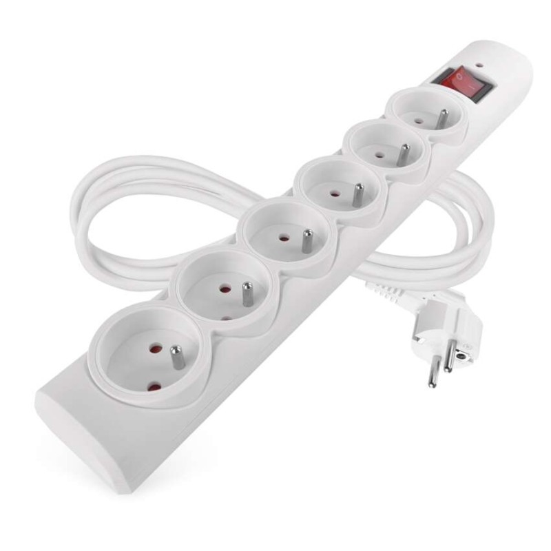 absorpce energie: 380 J (L-N)|anténní (koaxiální ochrana): ne|barva: bílá|délka: 1,5 m|dětské clonky: ano|doba odezvy: 1 ns|EMI/RFI filtr: ne|garance: 2 000 €|indikátor přepětí: ano|indikátor zapojení: ne|jištení: –|jmenovité napětí: 250 V~, 50 Hz|max. proudová zátěž: 10 A max.|max. zátěž: 2 300 W|ochrana proti přetížení: ano, 10 A/ 250V~|ochranná úroveň Up: 1,3 kV (L/N)|počet zásuvek: 6× 2P + PE|prodejní obal: 1 ks, krabice|rozměr: 358 × 53 × 40 mm|rozsah kmitočtu: neuvádí se|tel. / fax / DSL ochrana: ne|USB výstup: ne|útlum: neuvádí se|vodič: H05VV-F3G 1,0 mm2|zkušební vlna U0c: 6 kV (L/N)
