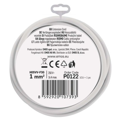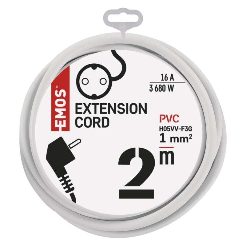 EMOS Prodlužovací kabel 2 m / 1 zásuvky / bílý / PVC / 1 mm2