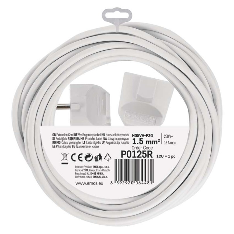Prodlužovací přívod SCHUKO 5 m na 250 V~ slouží k prodloužení elektrické energie tam, kam pevná zásuvka nedosáhne.