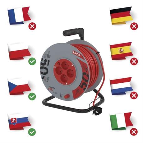 Kabel o délce 50 m s kvalitním vnějším PVC pláštěm a vodiče o průřezu 1,5 mm2 ho předurčují k práci v interiéru. Díky otáčejícímu bubnu se práce s ním stává pohodlná, rychlá a jednoduchá.