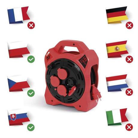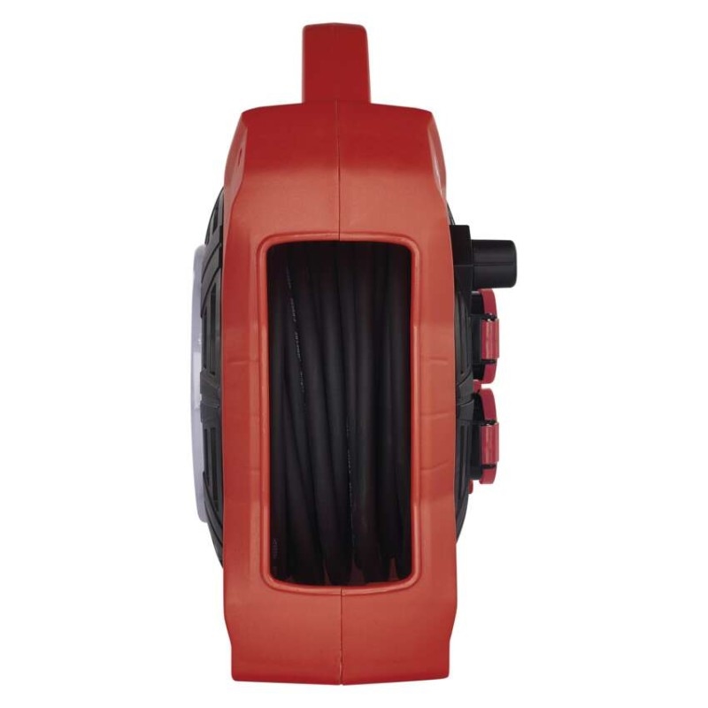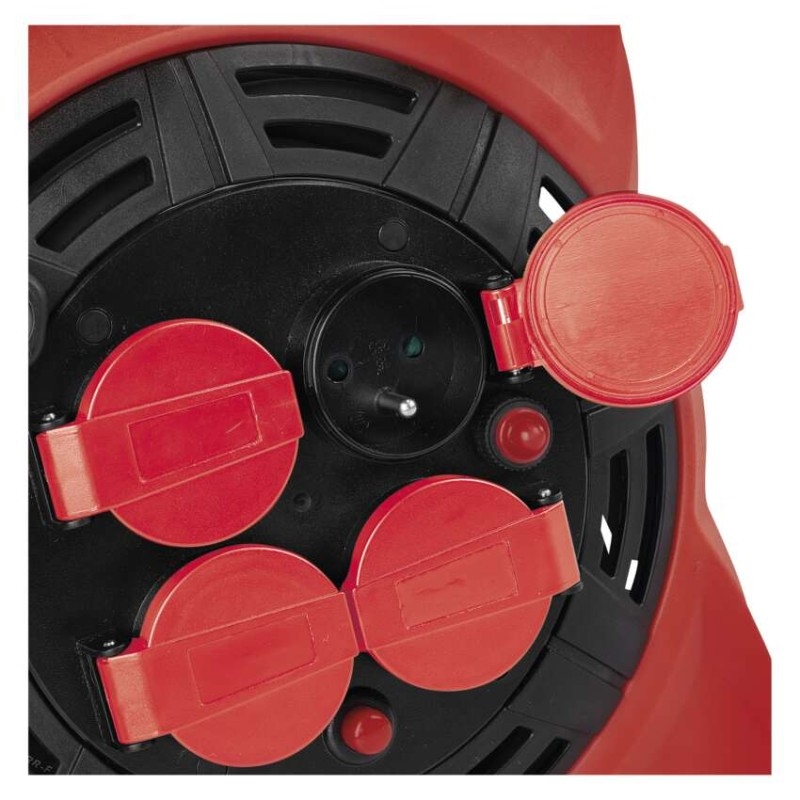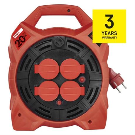 Naviják prodlužovacího kabelu s LED reflektorem umožňuje zapojení až 4 elektro zařízení současně. Zásuvky odpovídají napětí 230 V~. Tento profesionální prodlužovací kabel je vybaven tepelnou pojistkou, která bezpečně ochrání všechny vaše zařízení před přehřátím. Pokud se teplota prodlužovacího kabelu uvnitř bubnu dostane nad stanovenou mez tepelné pojistky, obvod se okamžitě přeruší. Díky této pojistce nedojde k poškození zařízení a vás ochrání před nebezpečným úrazem.