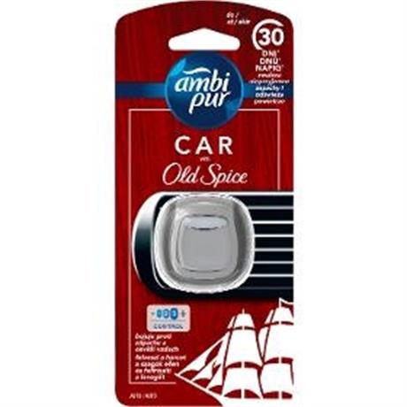Vůně do auta. Ambi Pur Old Spice 1 ks. . S technologií OdourClear eliminuje pachy a zanechává lehkou svěží vůni. Vůně inspirovaná svěžestí citrusů a máty. Nepřekrývá, ale skutečně eliminuje nepříjemný vytrvalý zápach z vašeho auta, například z jídla, domácích mazlíčků, kouře nebo odpadků. Zanechává lehkou svěží vůni. Každý klip vydrží až 70 dnů. Snadno se připevní ke klimatizaci automobilu. Nastavitelná intenzita odpařování vůně pro lehkou svěžest. Diskrétní a stylové