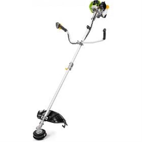 Křovinořez. Fieldmann FZS 3006-B. . Typ motoru: 2 – taktní 26 cm3, 0.75kW. Záběr sečení 44 cm. TWIST&GO Poloautomatická strunová hlava. Dvě struny o průměru 2.4 mm. Ocelový trojzubec 25cm. Dvojitá rukojeť s ergonomickými úchopy. Nastavitelný ramenní popruh. Váha: 7kg.