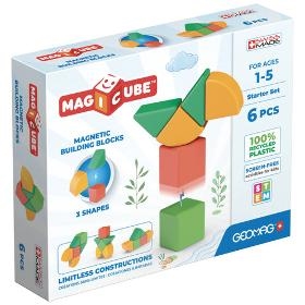 Stavebnice. GEOMAG Magicube Shapes 6 dílků. . Magnetická stavebnice. Kromě magnetických krychliček jsou součástí této sady také další dva magnetické tvary. Vyrobeno ve Švýcarsku, z recyklovaného plastu. . Počet dílků 6. Pro děti od 1 roku