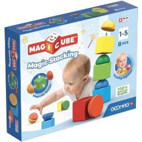 Stavebnice. GEOMAG Magicube Stacking 8 dílků. . Magnetická stavebnice. Stavění věží baví i malá miminka. Obsahuje čtyři magnetické polokoule a čtyři magnetické krychličky v kombinaci osmi barev. Vyrobeno ve Švýcarsku, z recyklovaného plastu. . Počet dílků 8. Pro děti od 1 roku