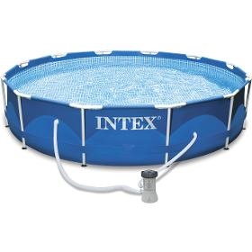 Bazénový set. Intex METAL FRAMETM POOL SET. . Specifikace:. Druh: bazénový set. Konstrukce: pevná. Barva: modrá. Objem vody (90% výšky stěny): 6 503 l. Rozměry: 366 × 76 cm