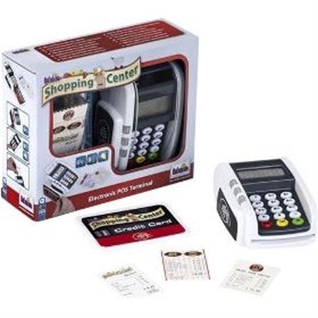 Dětský platební terminál. KLEIN 239333 Platební terminál se zvuky. . Platební terminál se zvukovými a světelnými efekty. Obsahuje 3 poukazy a 1 kreditní kartu s bezkontaktní funkcí. Parádní doplněk ke hře na obchod. . Hračka se světlem a zvukem, na baterie. Baterie nejsou součástí balení. Vhodné od 3 let. . Barva bílá/černá